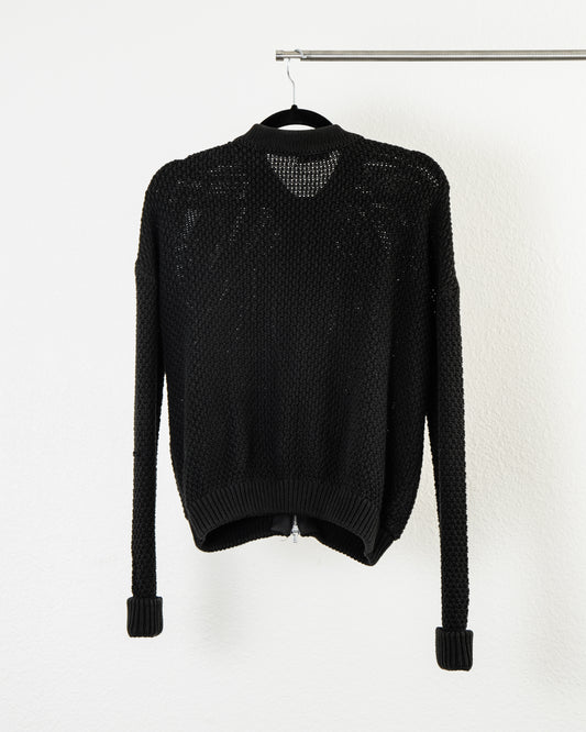 ATM Waffle-Textured Double Zipper Long Sleeve Hand Knit Cardigan with Pockets in Black