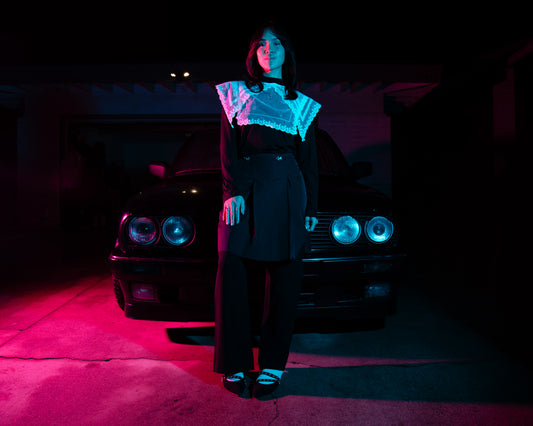 AMEN WARDY Oversized Structured 'Balenciaga-ish" Wool Blazer with Shoulder Pads and Rose Trim in Black