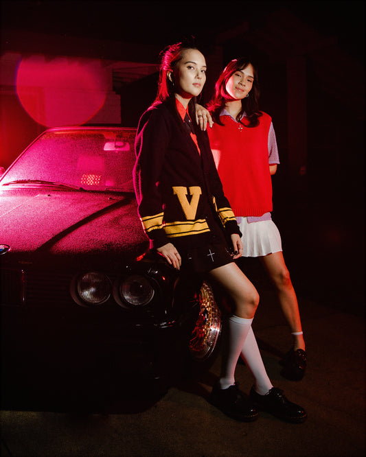 CHEERLEADER SUPPLY CO INC. Vintage 1975 Varsity Cheerleader Cardigan in Black and Yellow