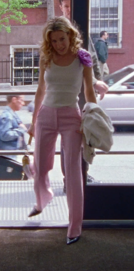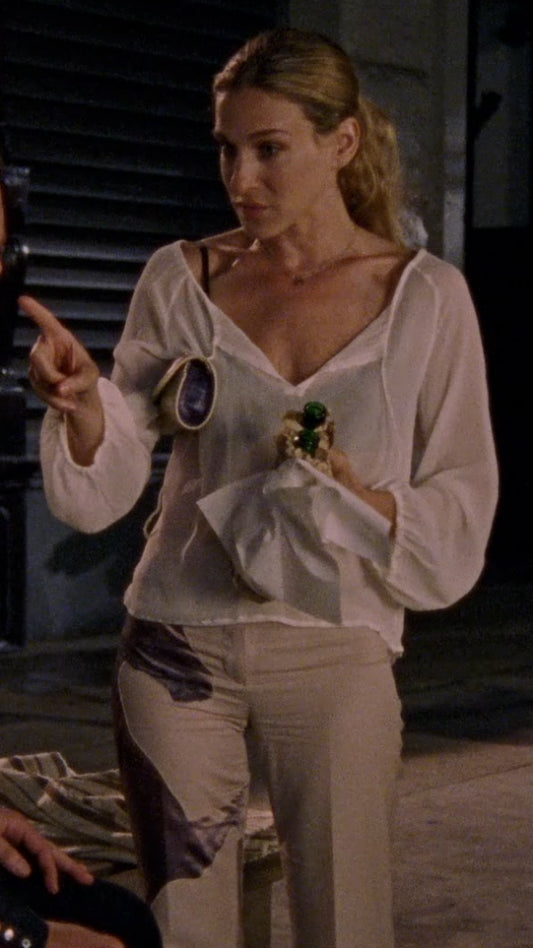 CACHÈ Y2K Pucci-Inspired Satin Effect with Ruching Button Down in Pink and Brown SZ S