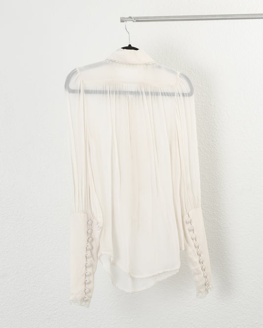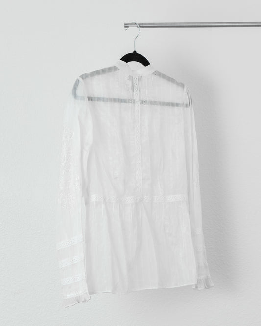 KENAR Cotton Silk Sheer Lace Button Down in Off-White