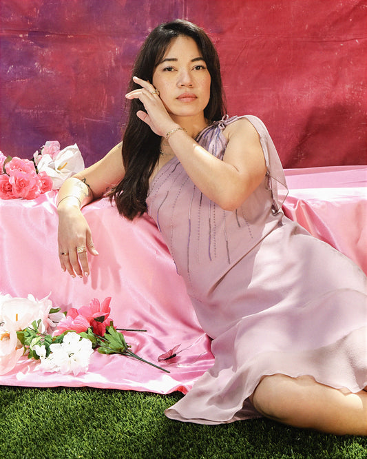 LAUNDRY by SHELLI SEGAL One Shoulder Chiffon Silk Flowy Dress in Lavender SZ 8