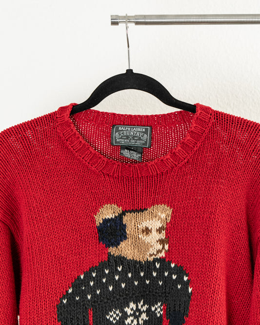 POLO BEAR Vintage Ski Bear Hand Knit Sweater in Red