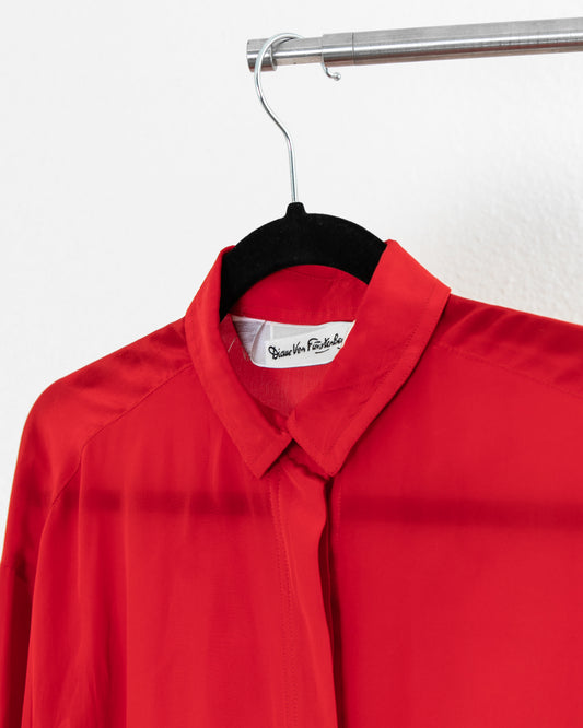DIANE VON FURSTENBERG Vintage Silk Long Sleeve Button Down in Red