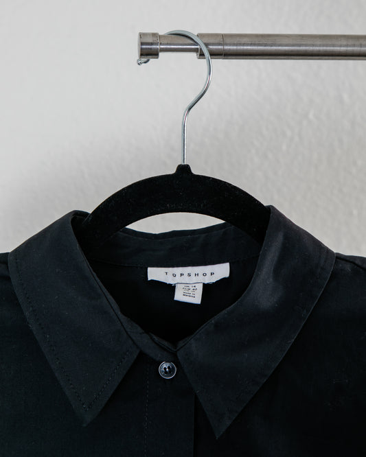 TOPSHOP Cropped Cotton Long Sleeve Button Down in Black