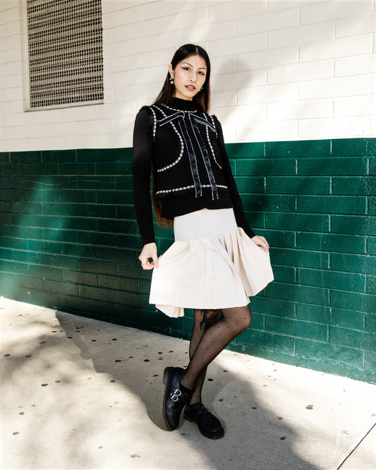 CHRISTINE GARCIA Romantic Fringe Sleeveless Vest with Bow SZ S