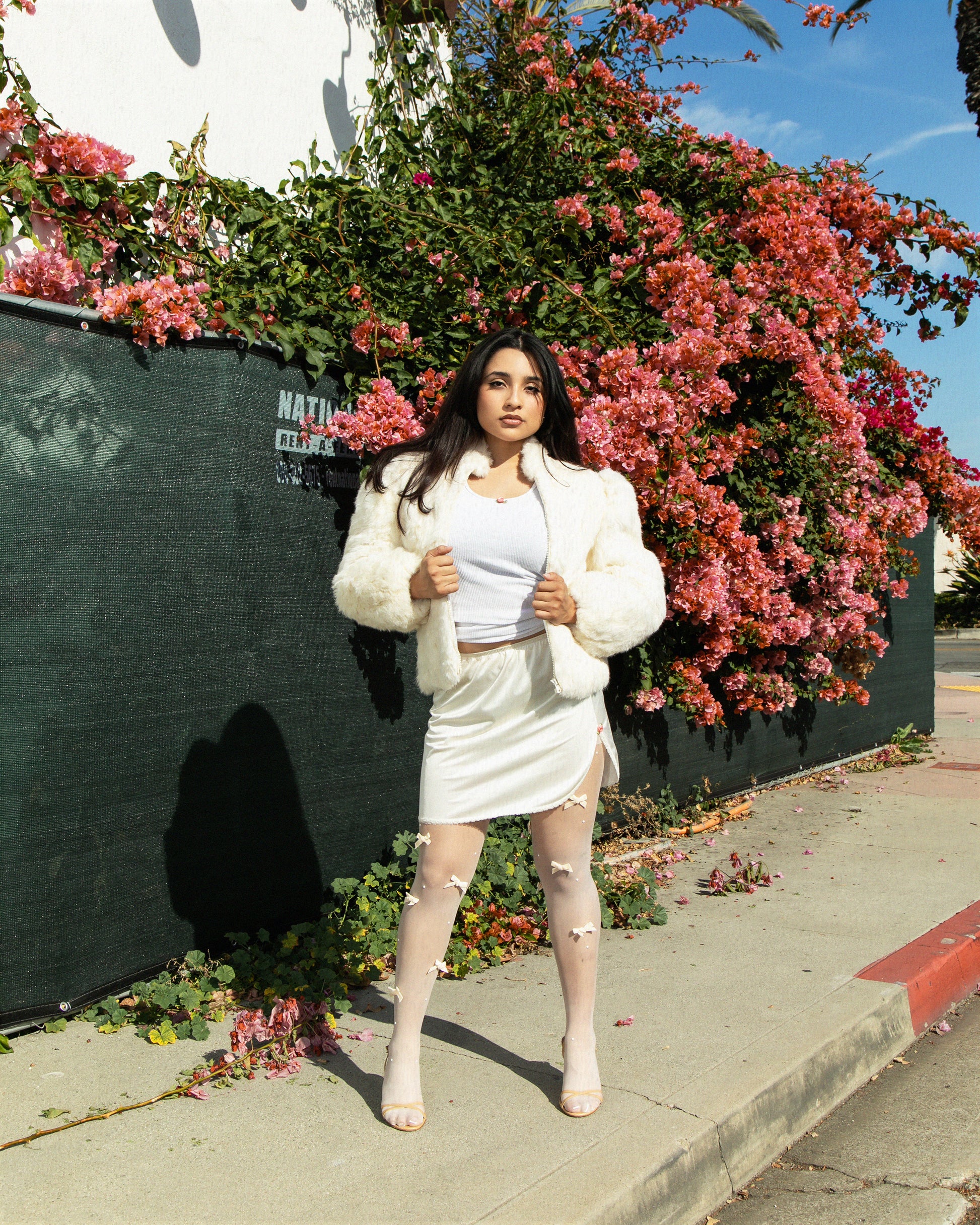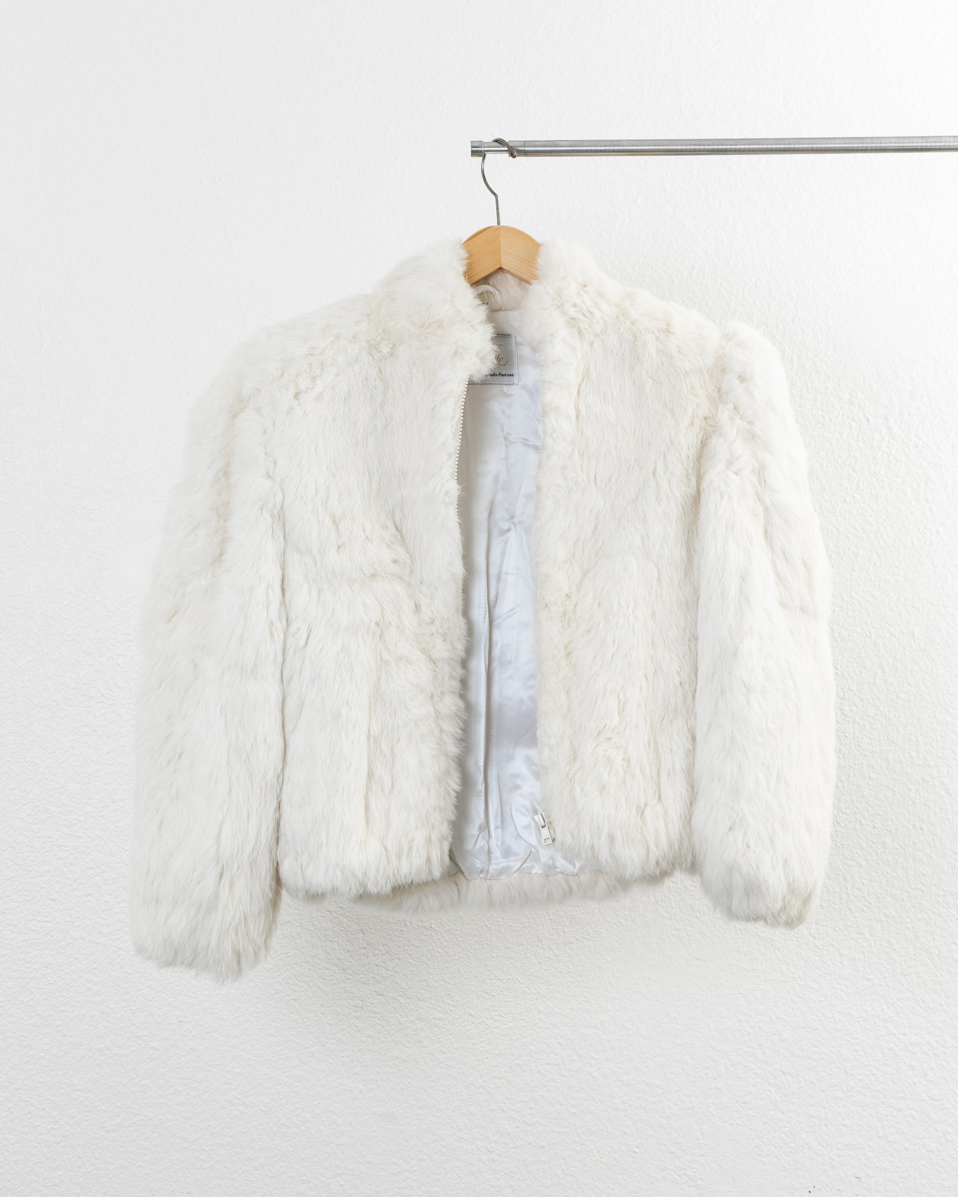 PRINCESS CARAVELLE Cropped Rabbit Fur Coat in Cream